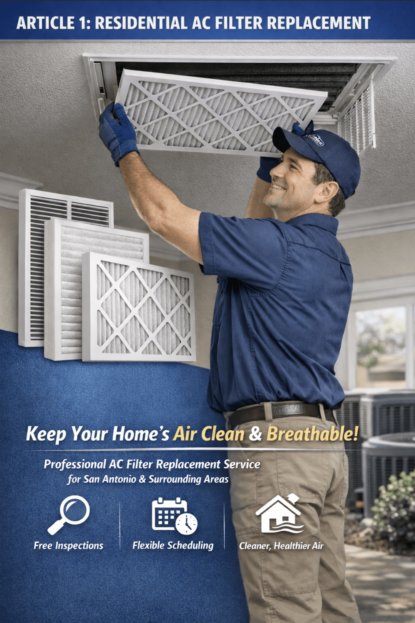 At Potlanco A/C Filter Services, we understand that healthy indoor air starts with clean filters. Our residential AC filter replacement service ensures that every home in San Antonio and surrounding areas breathes easier. We carefully select the right filter type and size for your system, inspect filter cages, and verify airflow direction to guarantee maximum efficiency. Whether you prefer pleated filters or high-quality media options, our experienced team handles delivery and installation with precision and care. Free inspections and flexible scheduling make it easy to maintain optimal air quality for your family, giving you peace of mind and cleaner air every day.